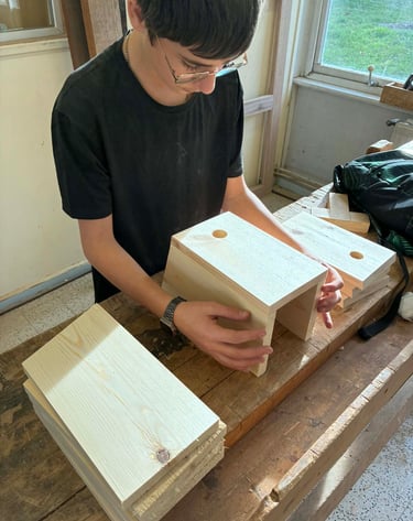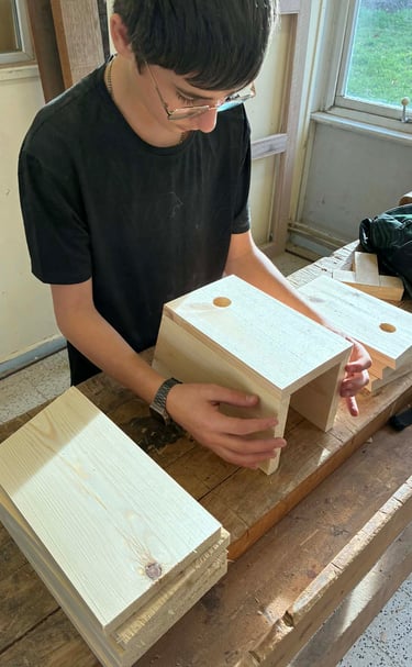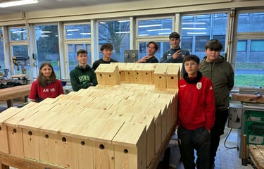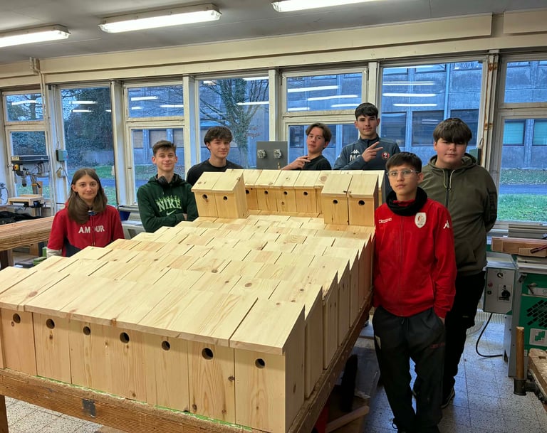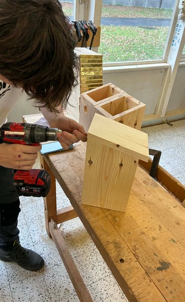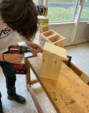 Fabrication de nichoirs par les 3 et 4 P bois de Monsieur Eelen pour la journée de l’arbre de la Commune d Ouffet (novembre 2025).