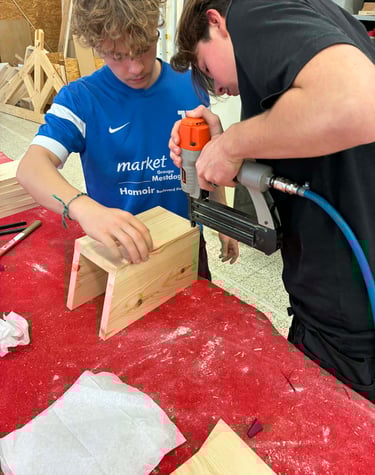 Projet de réalisation de tables "pique-nique" pour le Patro St-Martin d'Anthisnes par les élèves de 3P Bois de Monsieur Eelen. Bravo aux élèves pour leur implication et leur travail (juin 2024).