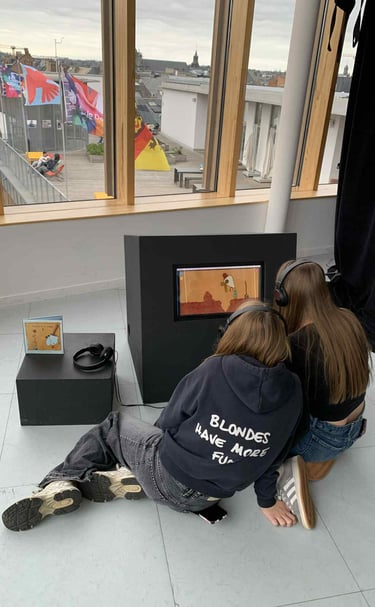 Ce mardi 2 décembre, les élèves de puériculture ont pu découvrir Christian Voltz, auteur et illustrateur pour enfants, à travers une exposition ludique et inspirante présentée à Namur. Avec Madame Nollomont (décembre 2025).
